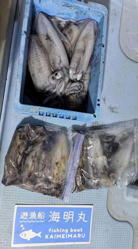 - ナイトアオリイカ便での出船でした。日暮れ前に普通のティップランで少しと挑戦しましたが、1杯だけでした。<div>ポイント移動して、ライトオンでしばらくしましたらぽつぽつ釣れて全員キャッチしていただきました😊</div><div>竿頭は9杯ほどでした。あと、フックアウトありで残念でした。</div><div>今日はお疲れ様でした。またの乗船お待ちしております。</div>