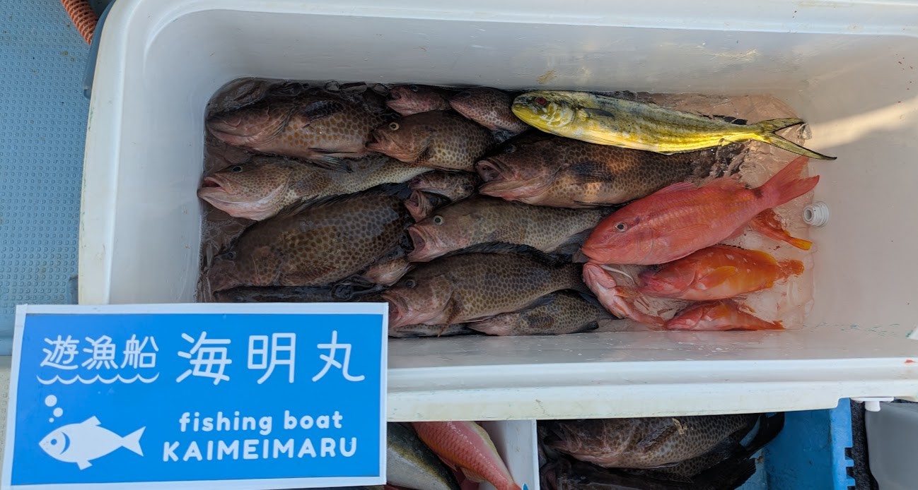 SLJでお父さん、お子さんのグループで挑戦していただきました。朝からぽつぽつ釣れてイイ感じ😊初挑戦のお子さん釣っていただきました😊オオモンハタがよく当たり、40オーバーのナイスサイズもありました。釣れにくい時間帯もありましたが、最後まで頑張っていただいて全員安打で良かったです。あと、フックアウト多数で残念でした😢魚種はツバス、シイラ、オオモンハタ、アカハタ、ホウボウ、オジサン、アヤメカサゴなど