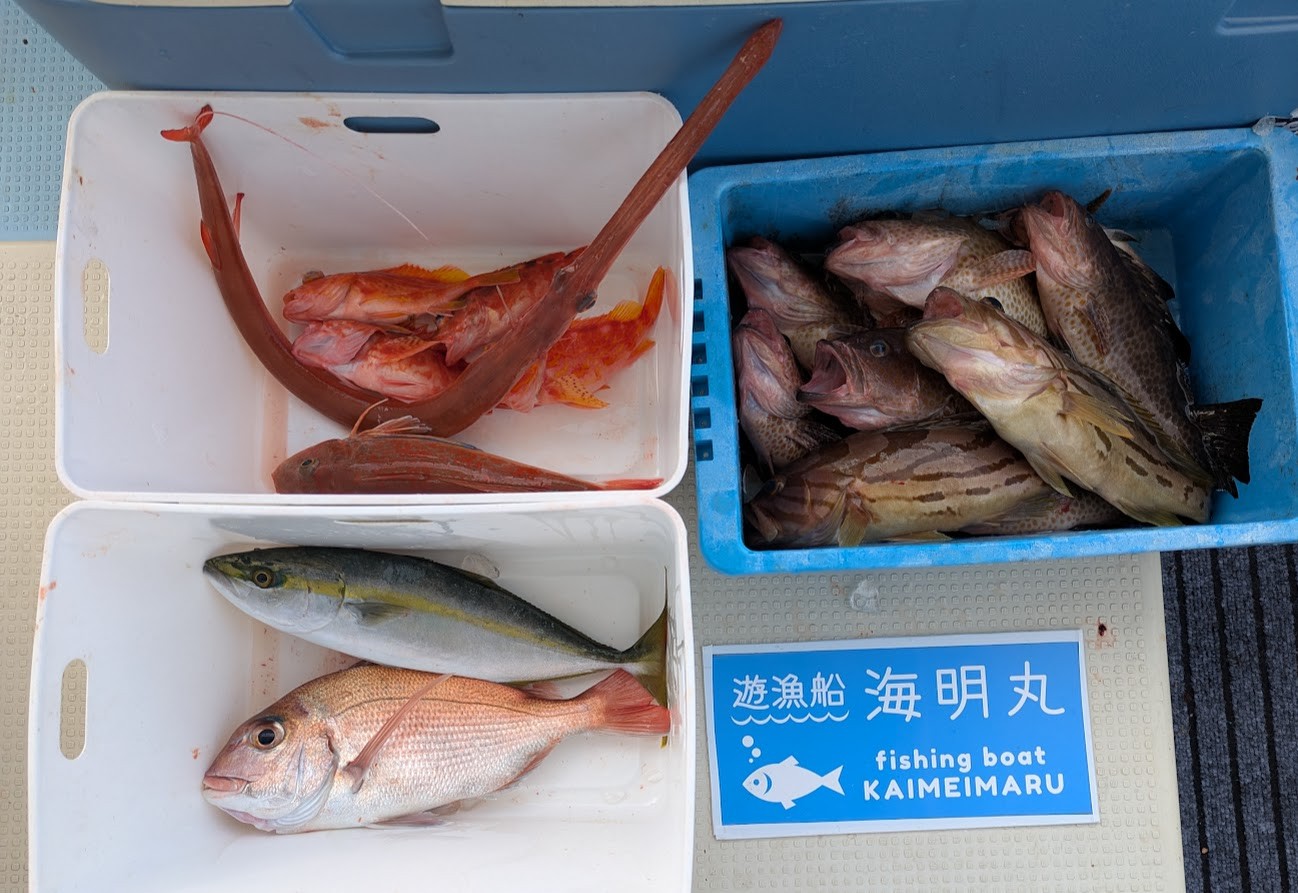 タイラバ、SLJでの出船でした。前半はぽつぽつ釣れてイイ感じ😊タイラバ初挑戦の方もオオモンハタ、マダイなどキャッチ。遠方からのお客様は初魚種で、ホウキハタ、アカヤガラなどキャッチ。でしたが、後半は失速・・・なかなか渋い感じ😢ポイント移動しながら頑張っていただきましたが今一つで終了でした。魚種はツバス、マダイ、オオモンハタ、ホウキハタ、カサゴ、アヤメカサゴ、ホウボウ、アカヤガラなどでした。