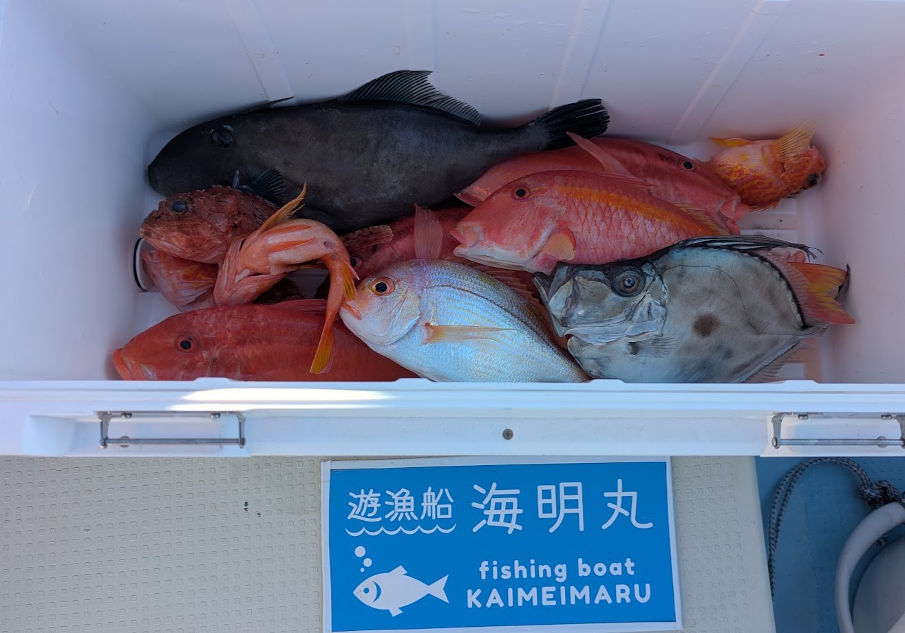 タイラバ、タイラバサビキ、などでの出船でした。朝一は深場深場からスタート・・・アマダイ、レンコダイなどキャッチ。中盤からは浅場中心で挑戦していただいて、よく当たりがありオジサンが元気でオジサン祭りでした。それからポイント移動しながら頑張ってアカハタ、ホウキハタ、などで終了でした。魚種はアマダイ、レンコダイ、カガミダイ、ホウキハタ、オオモンハタ、アカハタ、オニカサゴ、アヤメカサゴ、ホウボウ、オジサン、ウマズラハギなどでした。